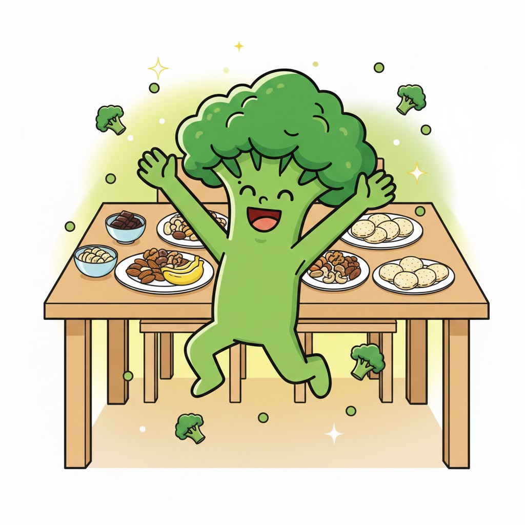 ブロッコリーくん、そんなに悲しまないで! 今日は、お姉さんが実際に食べている「お腹に優しくて美味しい低FODMAPおやつ」を厳選してご紹介しますね。